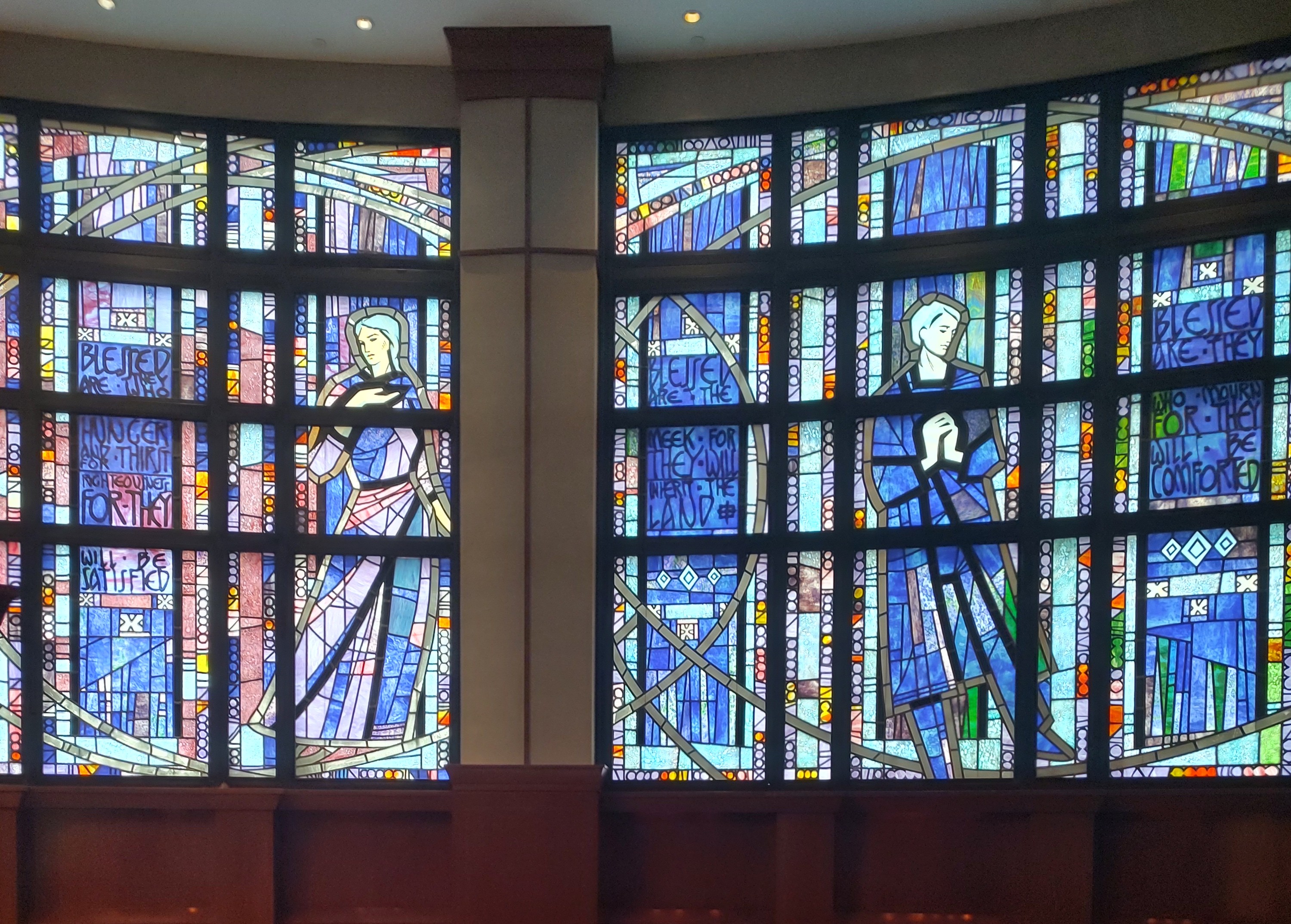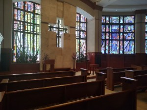 The Chapel at St. Vincent’s was across the main hospital from my mother’s room, but I sought it out on a recent Saturday morning. The stained glass windows, inspired by the Beatitudes, remain. The room is a spot for meditative grace and quiet reflection. A few stolen moments can “restoreth my soul” in the midst of the intense strain of a busy hospital environment.