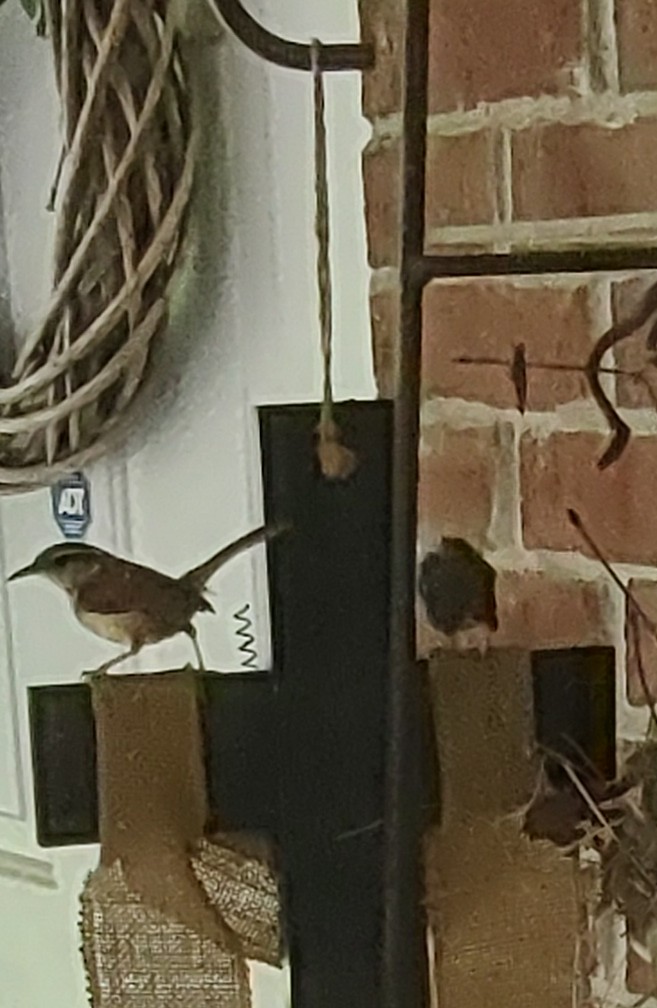 In the earliest days of spring, a pair of Carolina wrens got busy building a nest on a piece of wood at the top of a porch column at my mother’s house. It seemed like a fine piece of property at a place where other animals couldn’t climb, sheltered from the elements, with a roof overhead. As soon as they would make some progress, a gust of wind would blow their handiwork to the porch floor and the birds would pick up and start all over.