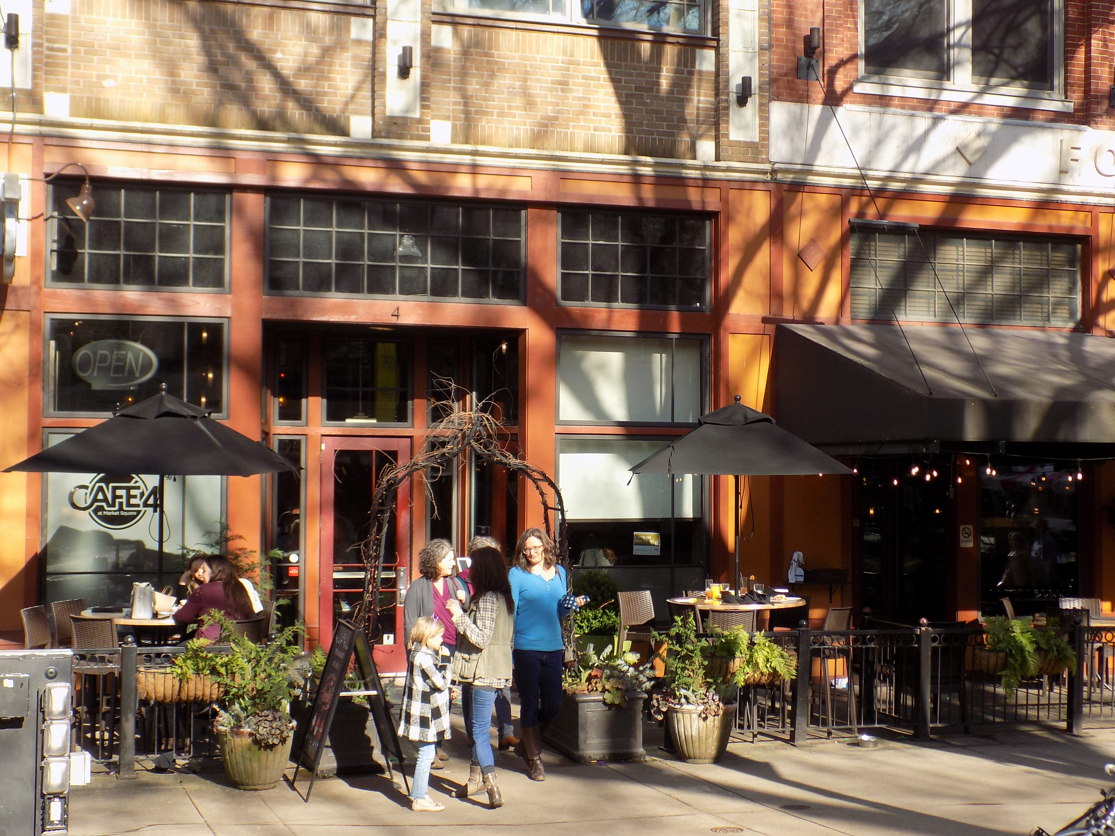 As the designated “foodie” of the group, it usually falls to me to choose the restaurant for these annual events. Since none of us had any experience with Knoxville, I was intimidated by this year’s challenge. After much research and menu-hopping, I settled on Café 4 in Market Square (www.4marketsquare.com/cafe4). Historically, Café 4 made its mark in Market Square before the area had developed its current cachet; it’s the OG, it seems, of Market Square eateries. Its dedication to a locally sourced menu is another appeal, as is its location in a landmark structure.
