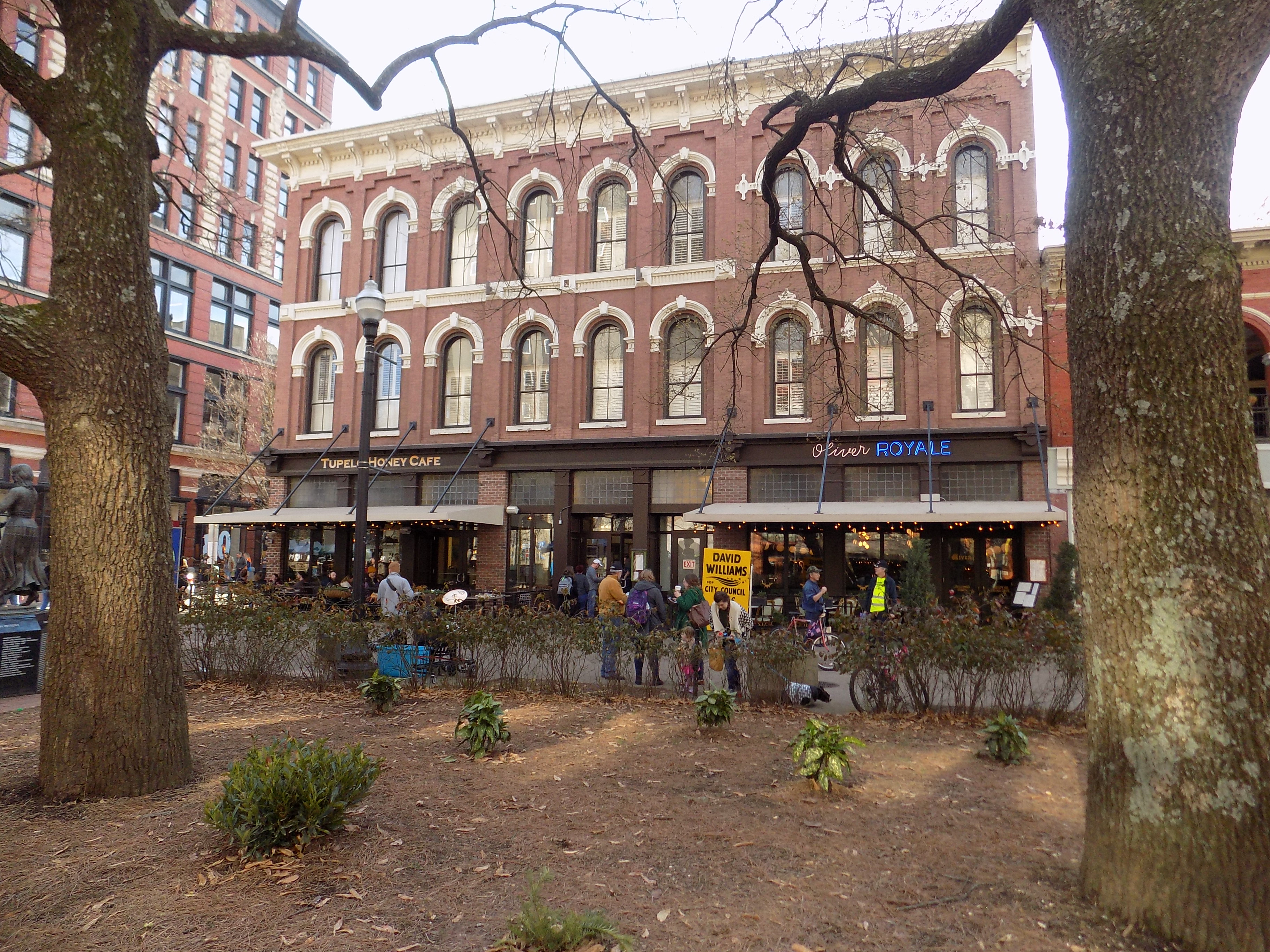 My greatest discovery of the night came in the form of a tip about the Oliver Hotel on Market Square (www.theoliverhotel.com). The Oliver is a central city boutique hotel in a 19th Century building that once served as a bakery. The hotel opened in 2011 but is a throwback to the days of traveling salesmen, train travel, and downtown hotels with all of the amenities. It exudes authentic character with two anchor restaurants. The upscale Oliver Royale is a cozy fine dining restaurant with an ambitious and local trending menu. My confit leg of rabbit was stunningly tender and juicy in a brothy mix of endive, bacon, Yukon gold mousseline, asparagus, cauliflower, and kale. The more casual Tupelo Honey Café anchors the other end of the Oliver.