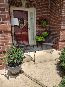 Mom’s house has a small sitting area at the front door – to call it a porch would be generous. Most of the attention goes to the flower bed around the crape myrtle but we usually spruce up the porch with a few containers at various levels. This spring, I did three containers featuring begonias with sweet potato vines and creeping jenny for added flow and interest. I’m “right pleased” with it, to use a term my grandfather might have used. It’s not ostentatious, but it adds a fresh pop. We’ll keep it watered and it should look pretty good through the summer.