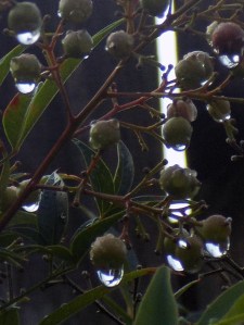 On the morning of the last full day of summer, I woke before sunrise to the sound of rain against the windowpanes. By the time I got up and looked out the window, it had stopped. As I packed my car, I noticed single drops of water hanging on each of the berries of a backyard shrub. They seemed to be a token of a summer passing away and a promise of new seasons to come.