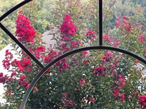 Just outside the window, a crape myrtle with rich burgundy blooms stands sentinel in the front yard. As I was going to sleep a couple of nights ago, I was struck by a silhouette on the bedroom wall opposite the window. A bright moon had cast a delicate shadow of the top branches of the crape myrtle. A gentle summer breeze was slightly blowing the branches and there was a lacy arched silhouette swaying against the bedroom wall. It relaxed me as I fell asleep.