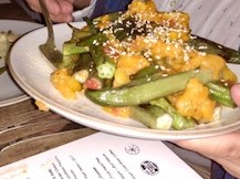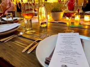 This will be one of the most memorable of the Factory meals because of the friends – old and new – who congregated for a very special event. I realized that all of the people who were seated at my table were there – either directly or indirectly – because of me. I worried that everybody might not have a good time but that concern melted away as we all talked and laughed, enjoyed the food together, and toasted the promise of summer.