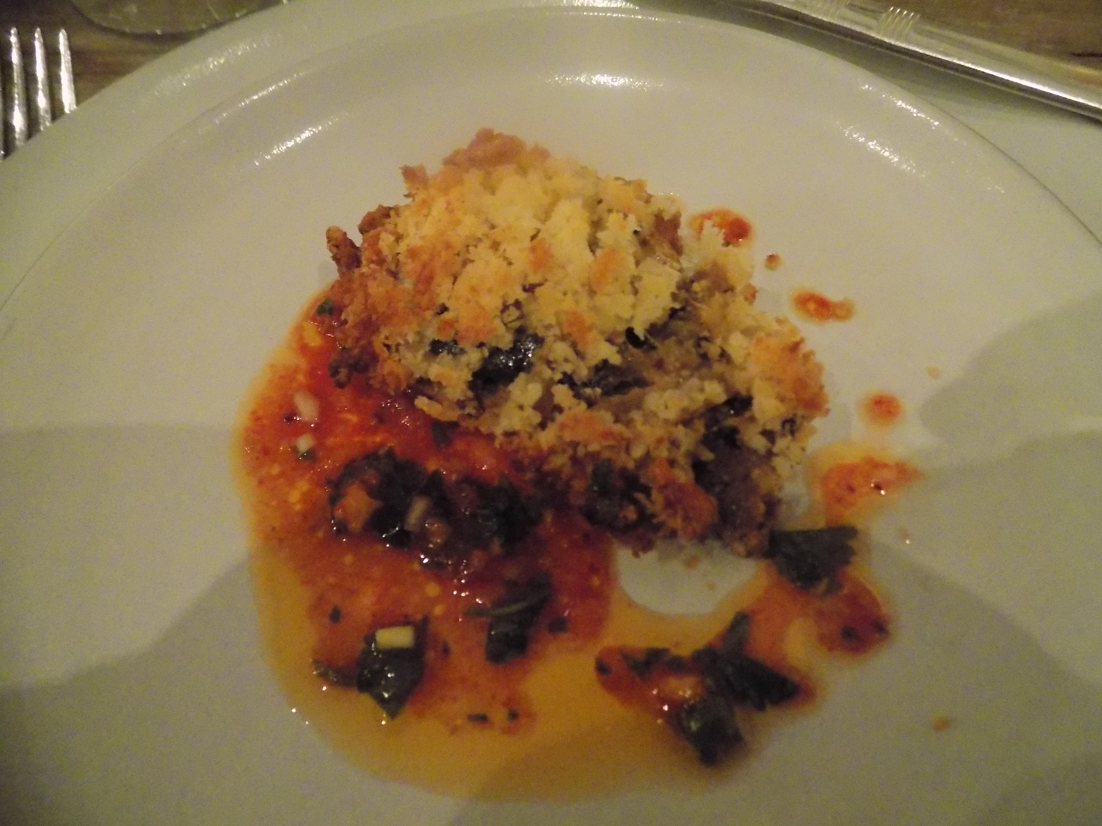 I might have overdone it with the meatball appetizer, but I managed to find room for the first of four courses that Chef Wilson distinguished by combining a load of ingredients in ways that allowed each to shine through and have its moment (or more) on the palate.