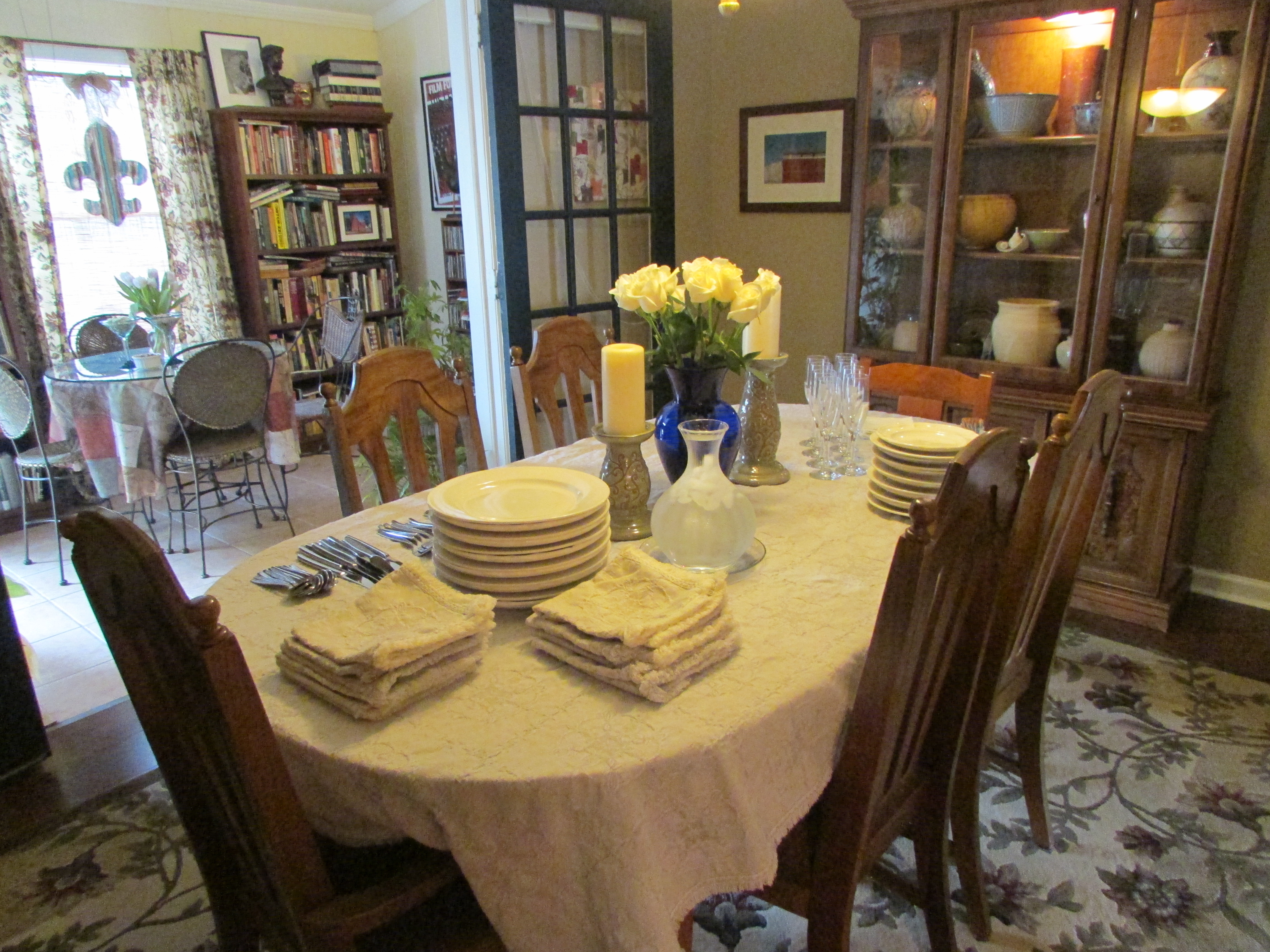 When the meal was over, I helped move my little table out of the way, thanked the hosts, pled a headache, and walked back to my parents’ house. I was happy that we had Dad’s barbecue for lunch so the day was not a total disappointment.