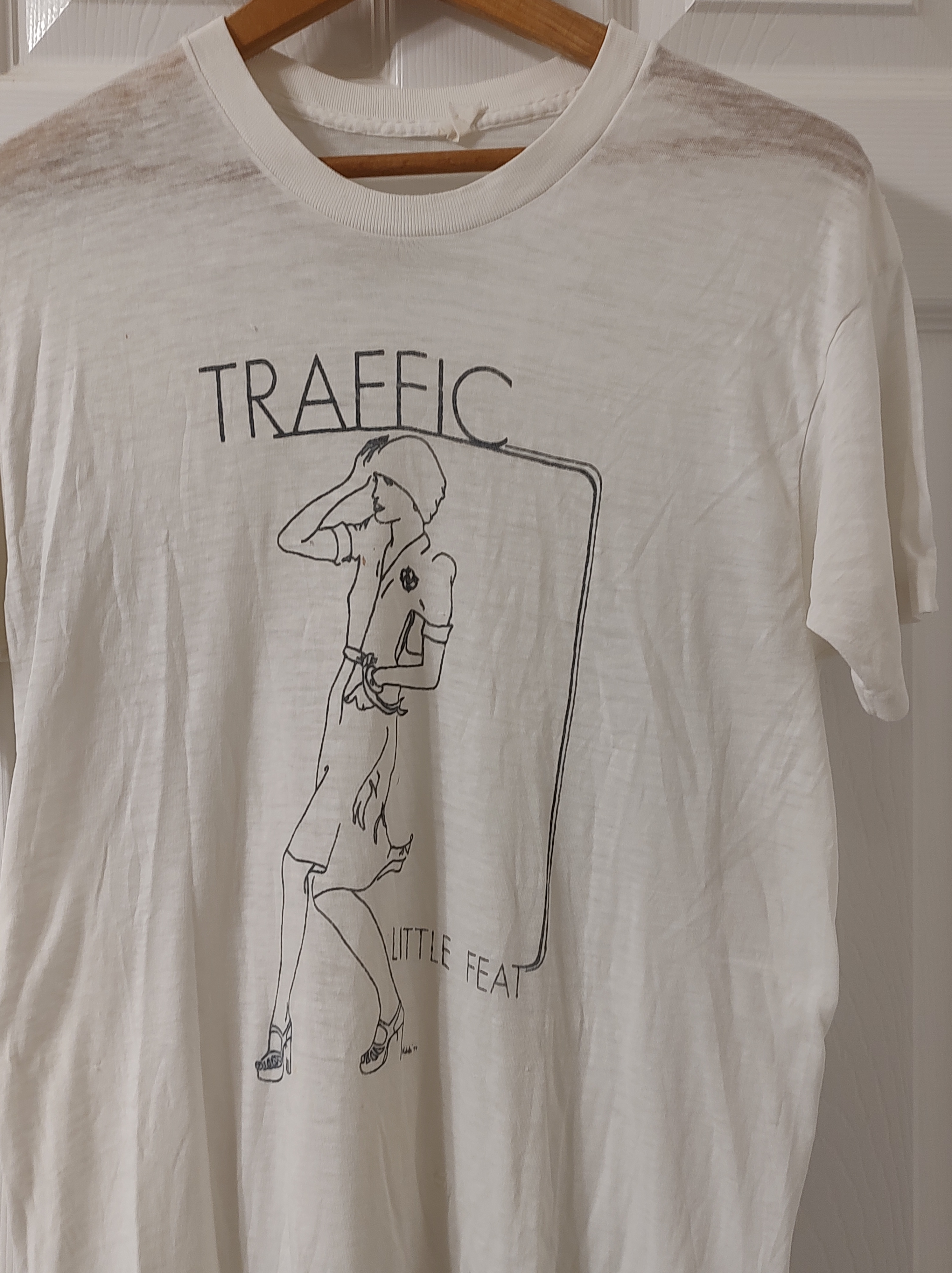 I soon became a UPC volunteer and began to get more responsibilities as I worked within the organization. I often worked “Security” and over time I began to get assigned to backstage “Artist Relations” duties. I have often remarked that it’s amazing what we’d do for a free tee-shirt back then, but we also had the opportunity to see a lot of the top acts and influential people of that era. I still have a few of those tee-shirts, wrinkled and way too small to wear. My favorite design, for Traffic / Little Feat, was worn so much that it has become see-through.