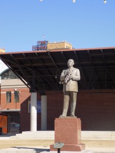 I have “done Beale Street” in the past, and had no big desire to dodge the crowds on this trip. However, I did jump off the trolley long enough to pay homage at the W.C. Handy statue on Beale Street. Handy, a Florence, Alabama, native, secured his reputation as “Father of the Blues” while living in Memphis. I feel a connection since he and I both taught at the same Alabama college – Handy in the early 1900s and I a century later. When in Memphis, I feel a certain responsibility to commiserate with him over our shared history.