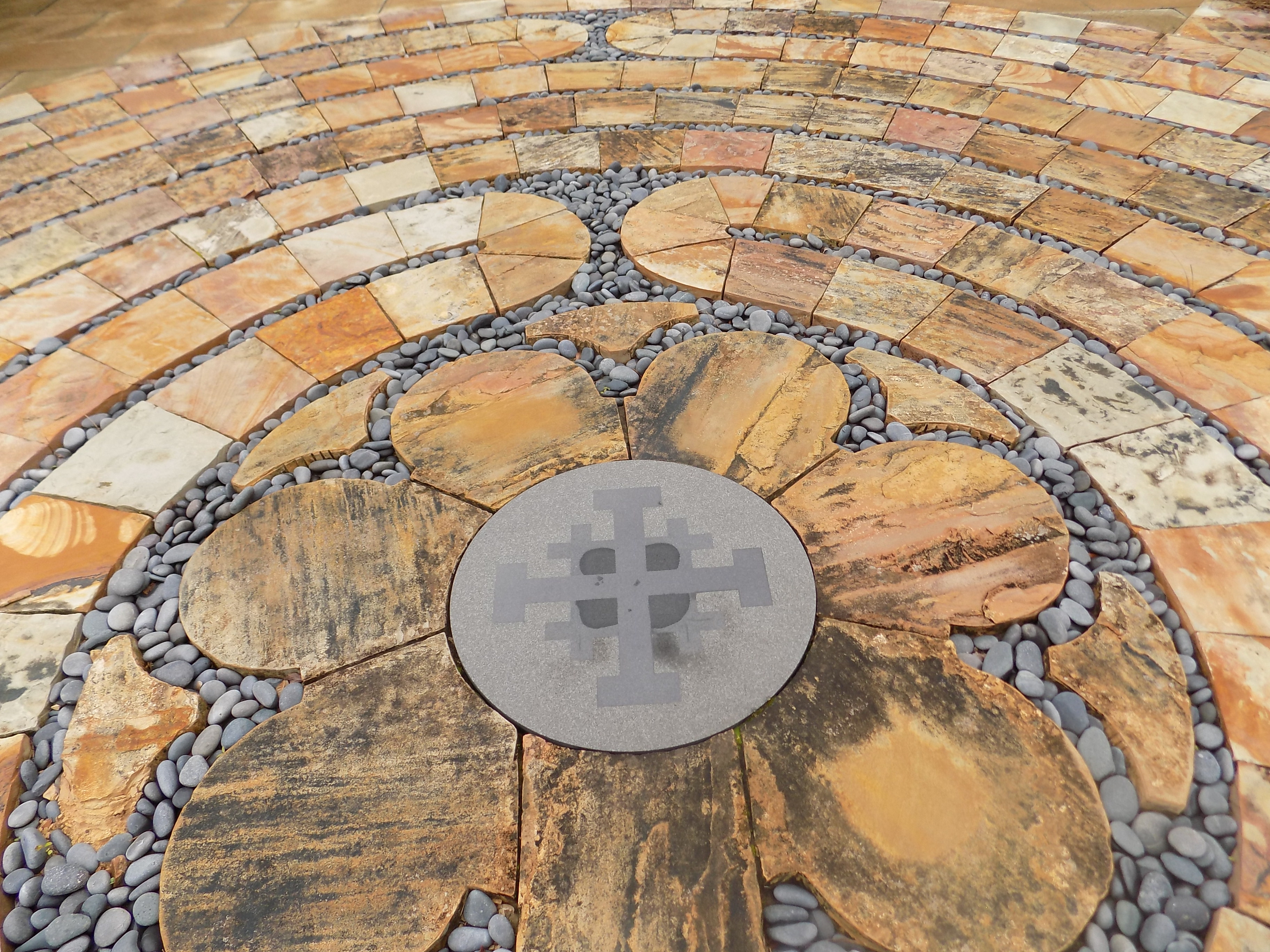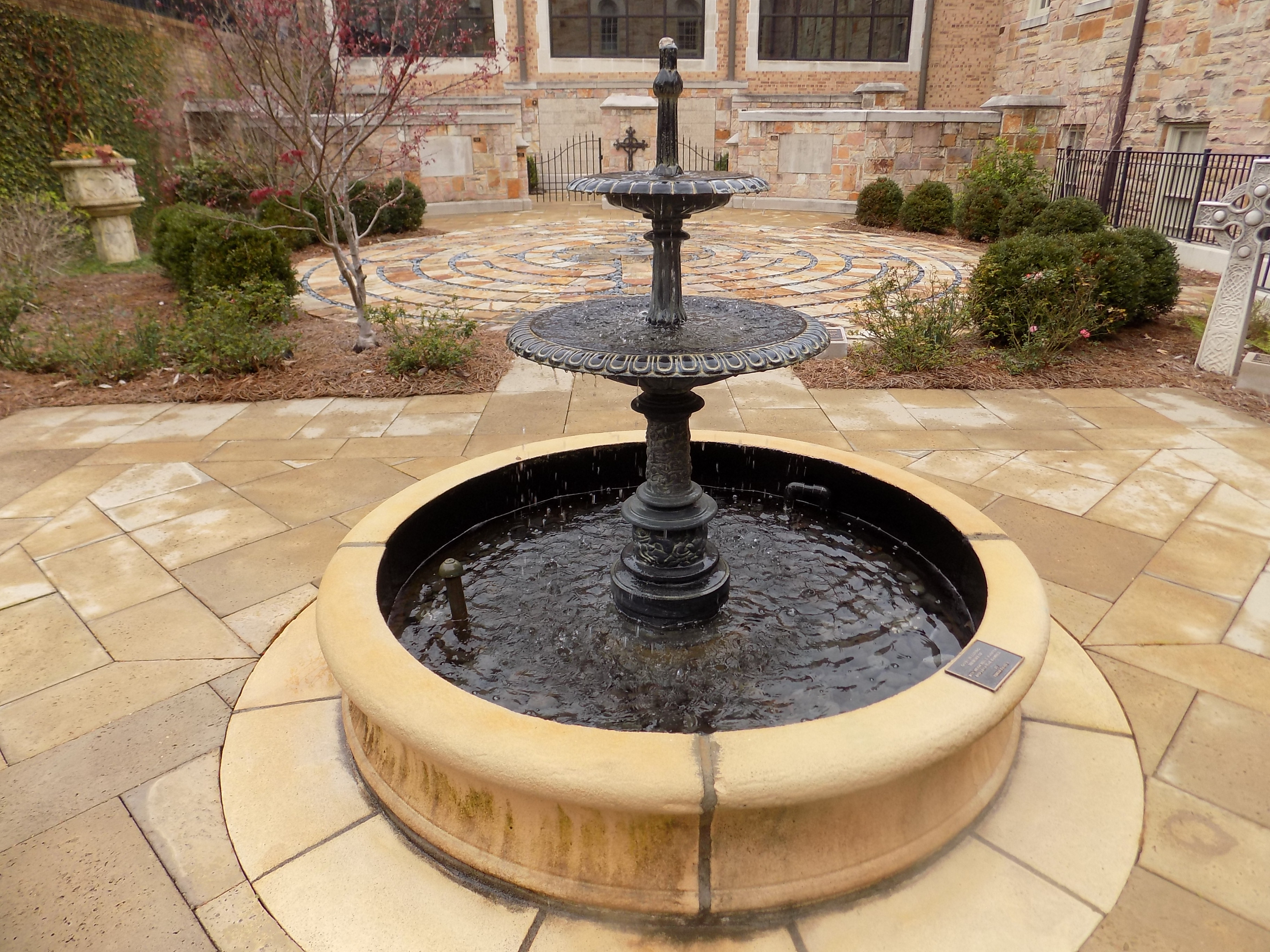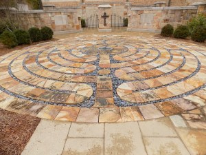 The one I just discovered is located at Trinity United Methodist Church in the Birmingham suburb of Homewood. It is a part of the church’s Prayer Garden and Columbarium. The church is on a busy road but the garden is below street level and that location, plus a trickling fountain at the entrance, filters out the street sounds and provides an added element of privacy to the space. The fact that the labyrinth is in front of a burial space makes it even more serene and introspective.